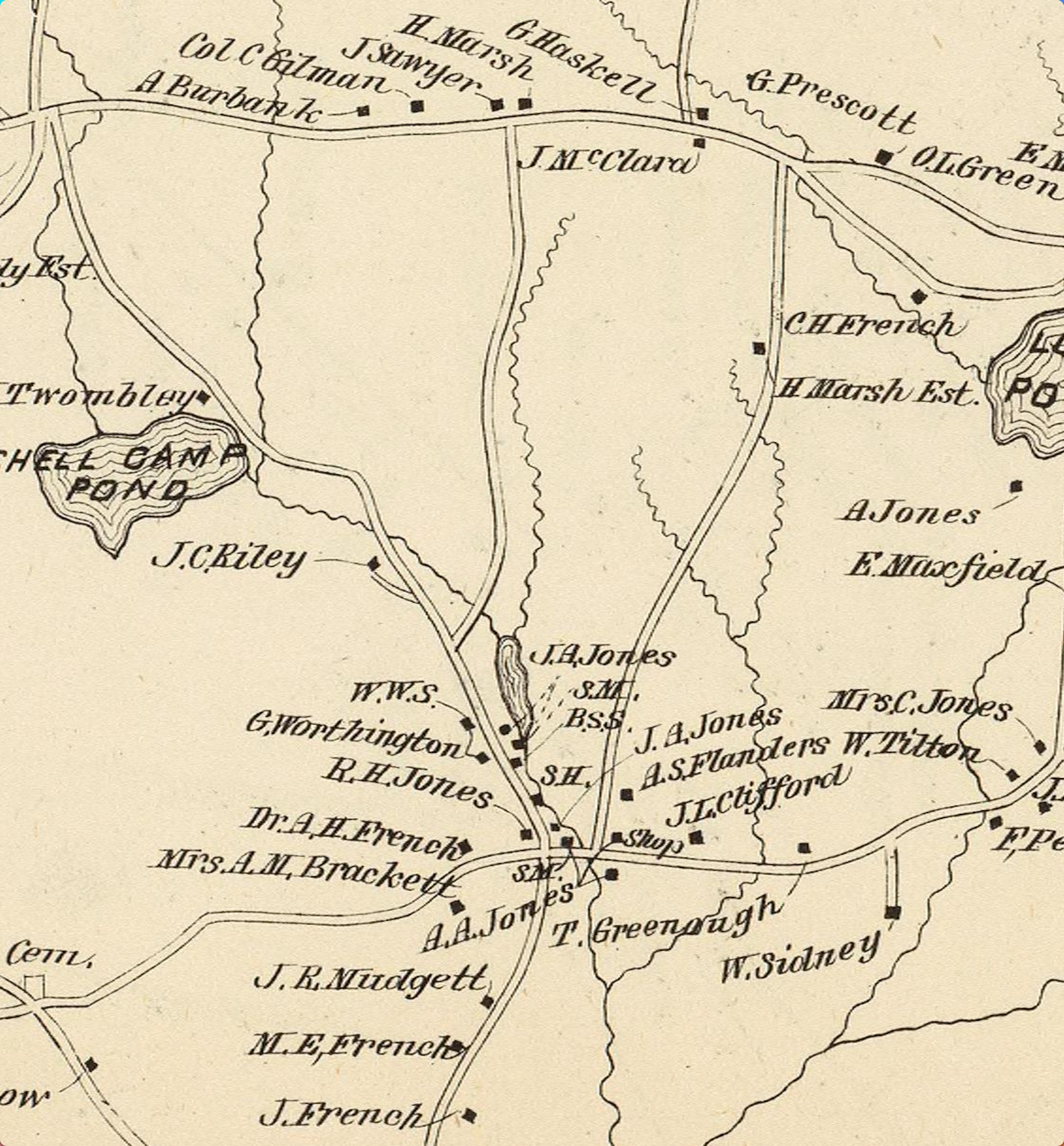 Shellcamp Pond was thus named by certain hunters, who, in the winter of 1749 and 1750,