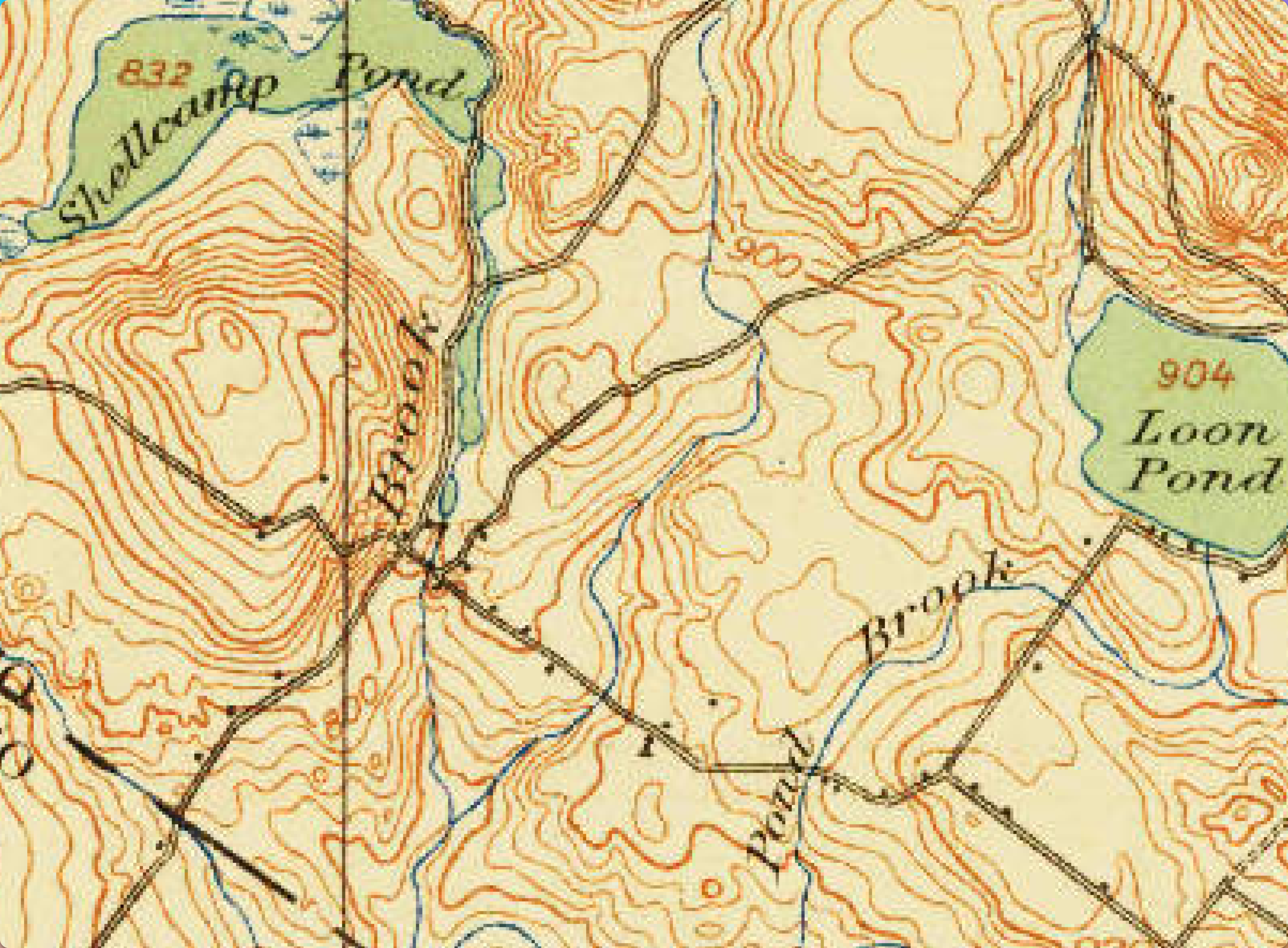 same way as the 1859 map. The 1919 Topographic map shows Shellcamp Pond pretty much the way it is today, which probably means